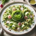 - Layer cucumber ribbons loosely for height.