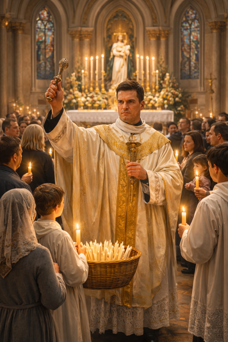 The central Candlemas tradition is the blessing of candles in church. These candles symbolize Christ as the Light of the World and were historically taken home to be lit during times of prayer, illness, storms, or need—serving as a visible sign of protection, hope, and divine presence throughout the year.