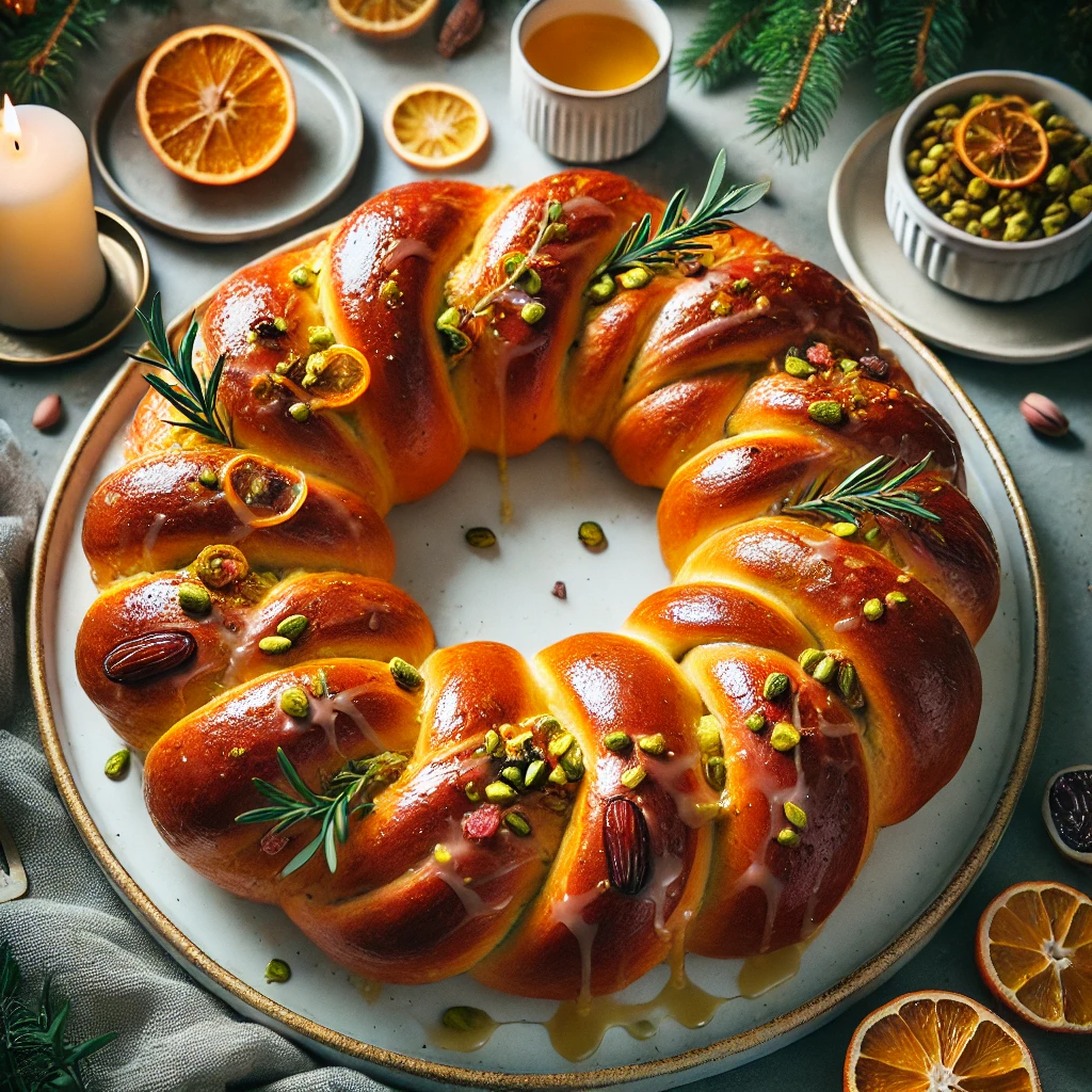 Citrus-Spiced Date Swirl Wreath with Pistachio & Orange Blossom Glaze December 30, 2025 by Oro Valentio