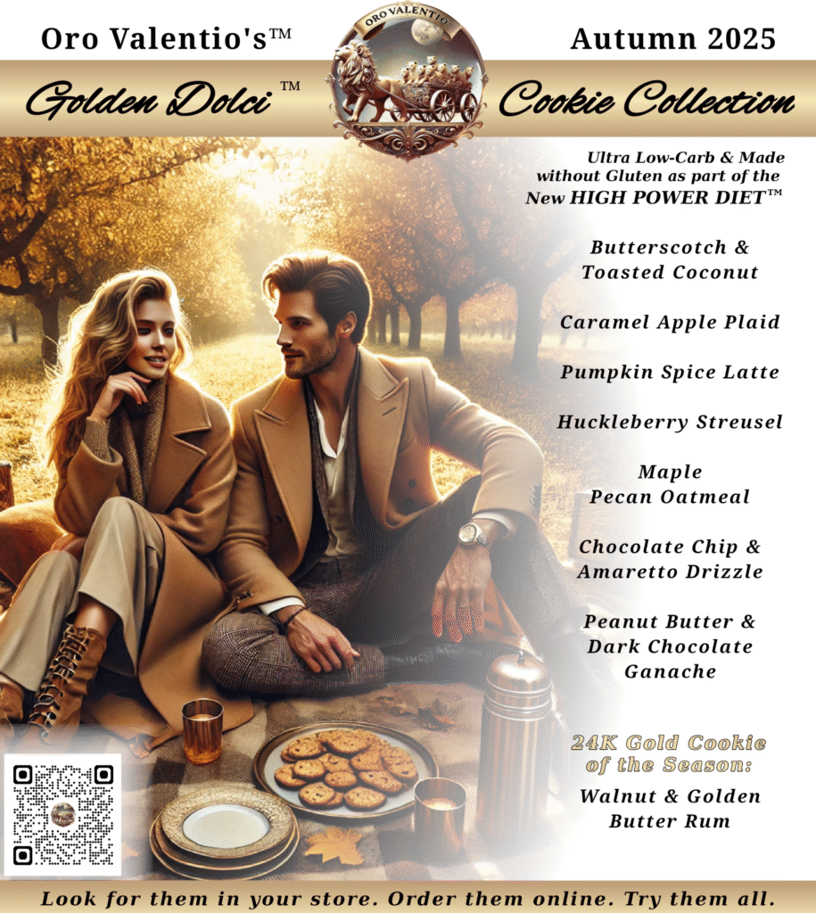 As the seasons change, Oro Valentio offers something more than shifting colors, changing temperatures in breezes, and new scents and hues in the world around you. We bring you fresh, exciting gourmet flavors designed to keep your High Power lifestyle delicious and inspiring every single day. Order our cookies online and have them delivered right to your door—love them, share them, and savor them with the ones you cherish. And be sure to check back for the launch of the next season’s Golden Dolci Cookie Collection… always High Power, always ultra low carb & made without gluten.