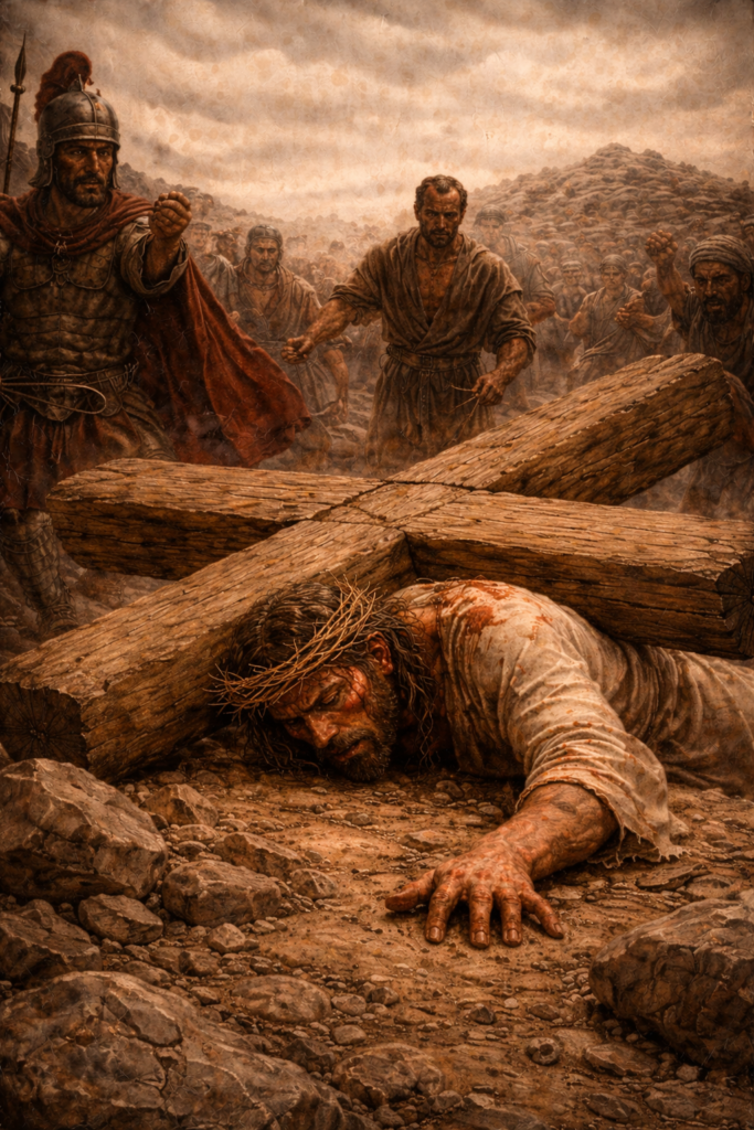 The tradition of Christ falling three times while carrying the Cross is not recorded explicitly in the Gospels, yet it has held profound theological weight in Christian reflection because it reveals truths the text implies but does not enumerate. The Church has long understood these falls not as moments of failure, but as windows into the mystery of redemption unfolding within human weakness. First, the falls emphasize the full reality of the Incarnation. In Jesus Christ, God does not redeem humanity from a distance or in abstraction. He redeems from within exhaustion, pain, humiliation, and physical collapse. The falls declare unmistakably that Christ did not carry suffering symbolically—He bore it in a body that could buckle under its weight. Salvation is not achieved through invulnerability, but through endurance freely embraced. Second, the number three has long been read symbolically as encompassing the fullness of human brokenness. By rising again each time, Christ reveals that redemption does not erase human frailty, but meets it repeatedly without withdrawal. He does not rise once and walk untouched thereafter; He rises again and again, showing that grace does not abandon the soul after repeated failure. Third, the falls confront the illusion that suffering must be efficient, strong, or dignified to be meaningful. Christ falls publicly, under ridicule, watched by indifference and hostility alike. In doing so, He sanctifies collapse itself—the moments when strength gives way and progress halts. The Cross is not only carried forward; it is borne through interruption, delay, and apparent defeat. This is essential for a wounded world, because it means that even when one falls under the weight of life, one has not stepped outside the path of redemption. Finally, the three falls speak to hope after sin and despair. Christ does not fall to stay down. Each rising is a silent proclamation that no fall—physical, moral, or spiritual—is final when love remains. He allows Himself to be seen in weakness so that no one who collapses under their own cross would believe they are beyond mercy. The victory of the Cross is not found in uninterrupted strength, but in love that continues to stand back up. In this way, the three falls are not a sidebar to the Passion; they are a revelation of its heart: that God saves not by bypassing human frailty, but by entering it so completely that even falling becomes part of the road to redemption.