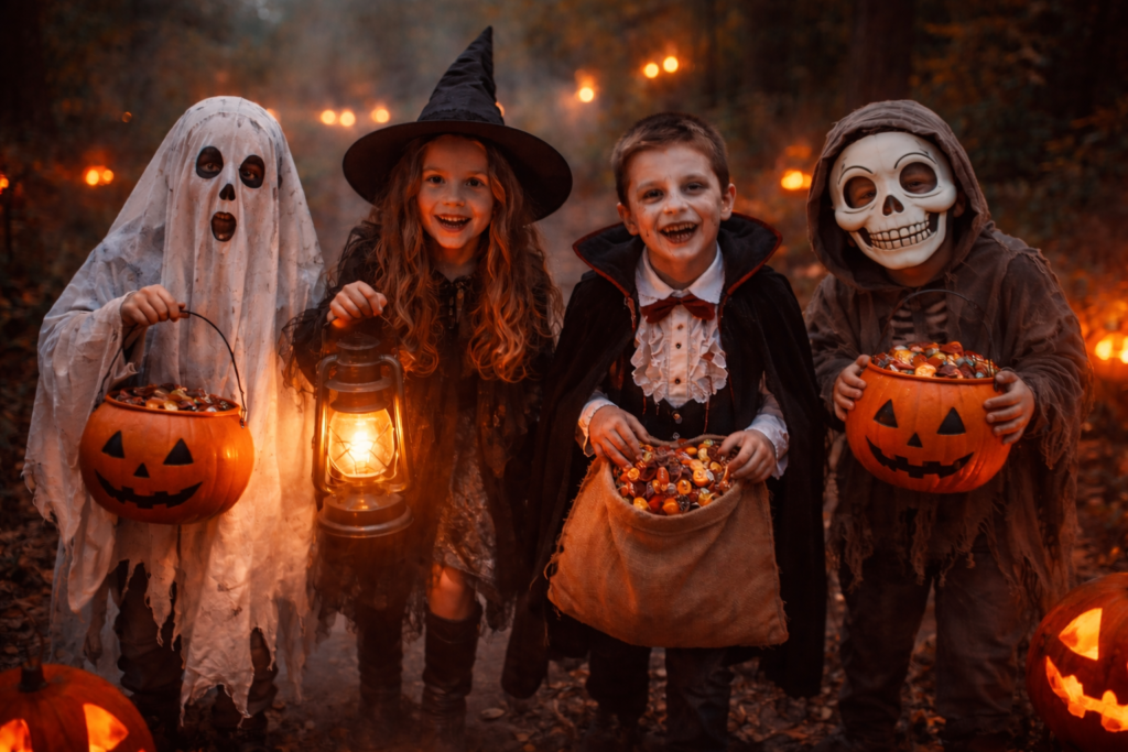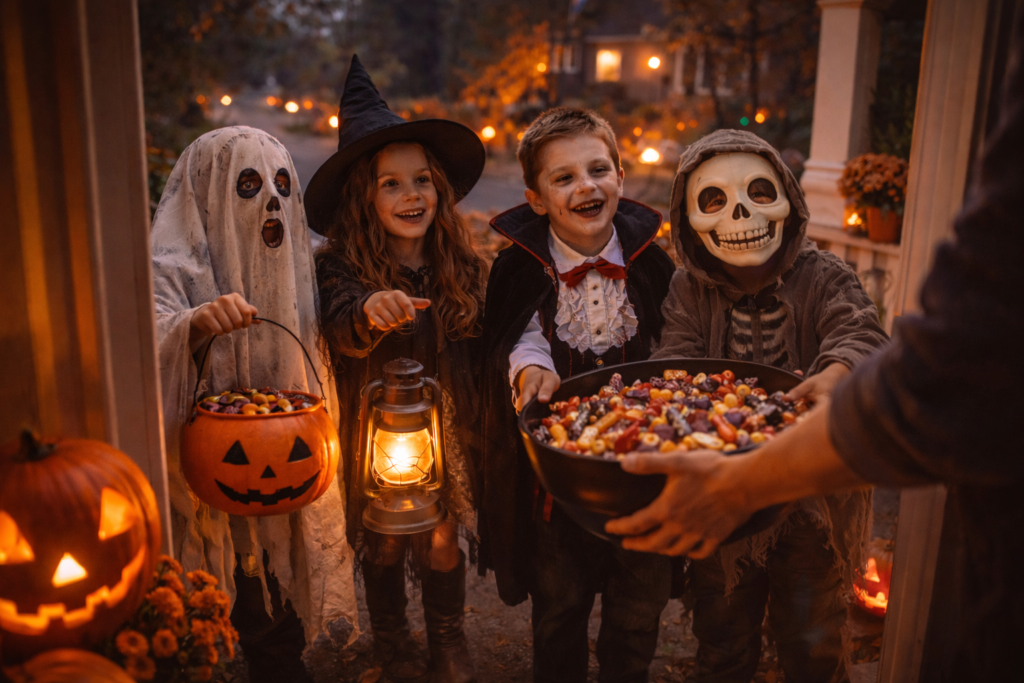 Children dress in costumes and go door-to-door collecting candy with the familiar phrase “trick or treat.” This tradition grew from older customs like souling and guising, eventually becoming a fun, community-centered activity that brings neighborhoods together.