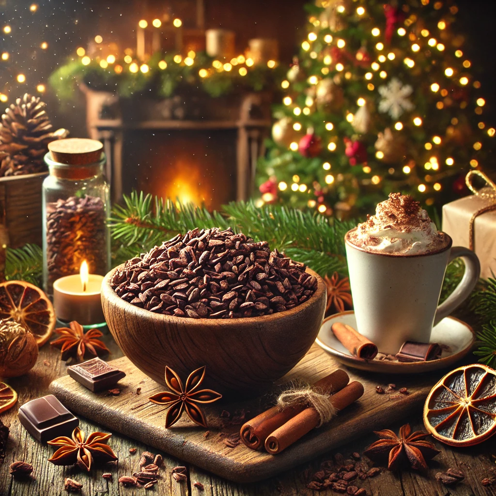 Cacao nibs offer depth and restraint, bringing a rich, bittersweet character well suited to winter’s quieter rhythm. Less sweet than chocolate and more structural in flavor, they add complexity and grounding to both sweet and savory preparations.