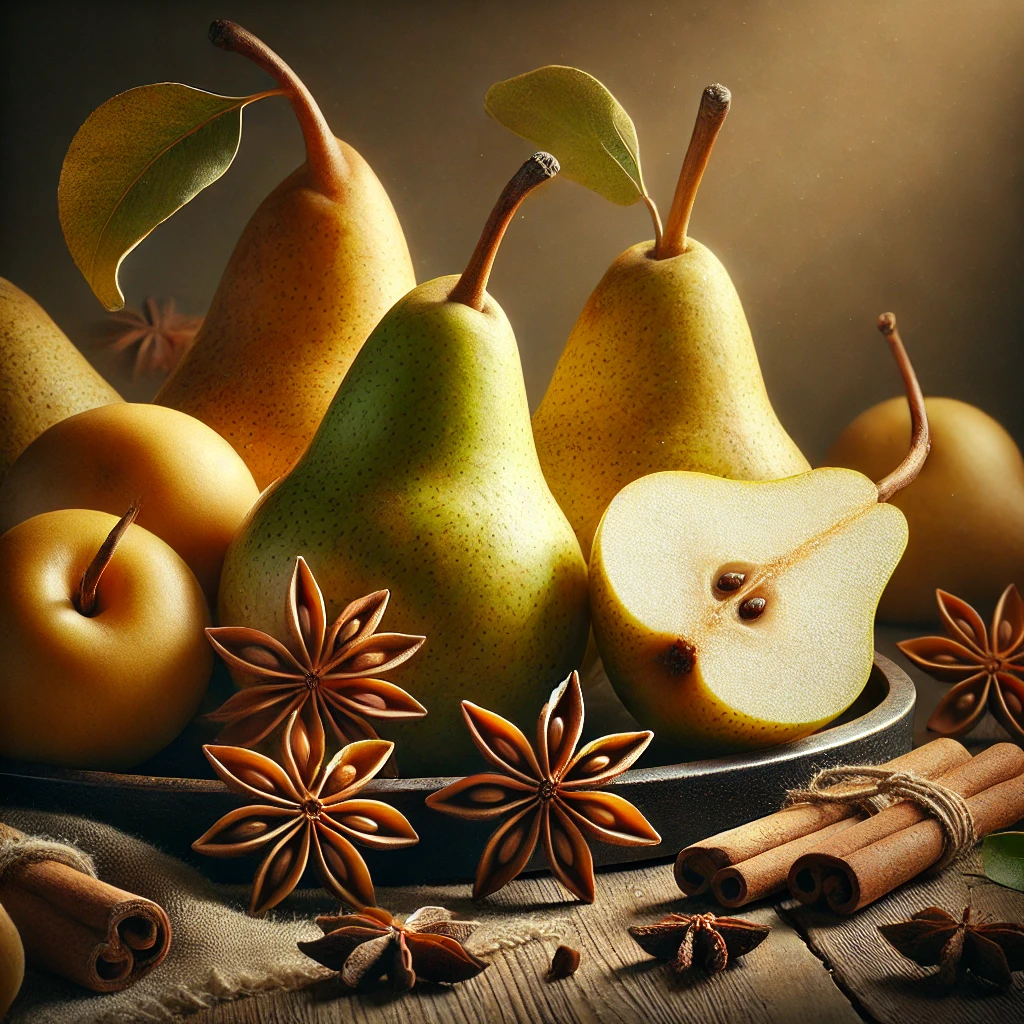 Pears offer soft sweetness and a tender texture that suits winter’s slower pace. Star anise contributes quiet warmth and depth.