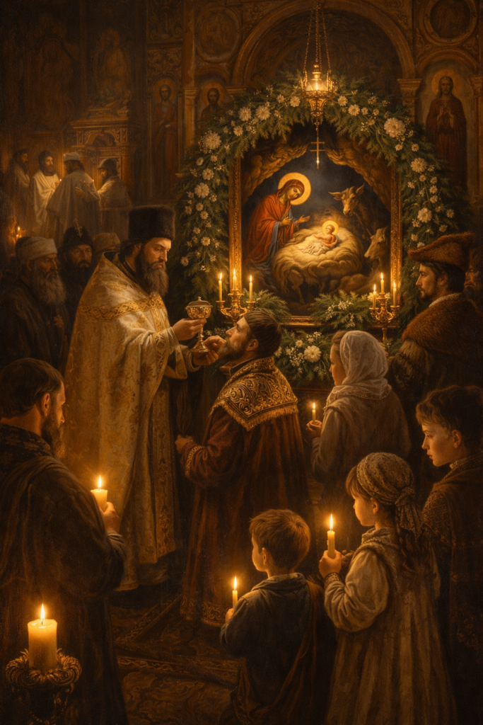 Christmas Eve is often observed with heightened restraint—sometimes until the first star appears—symbolizing watchful expectation for Christ’s birth.Night Vigil & Divine Liturgy