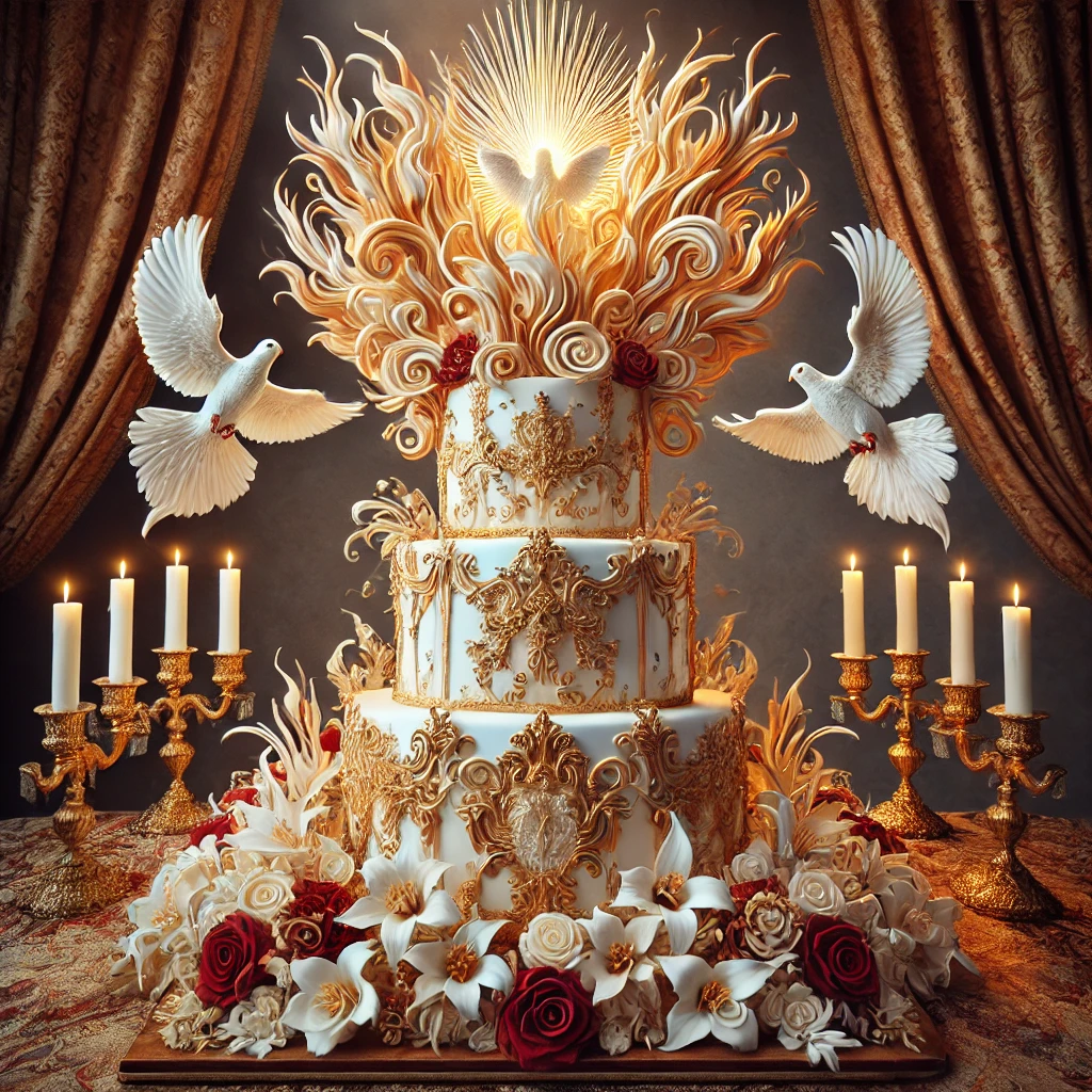 This rich, vibrant cake reflects the color of Pentecost—the fire of the Holy Spirit. Its deep red hue symbolizes passion, transformation, and divine presence, while its soft, luxurious texture makes it a centerpiece dessert for the celebration.