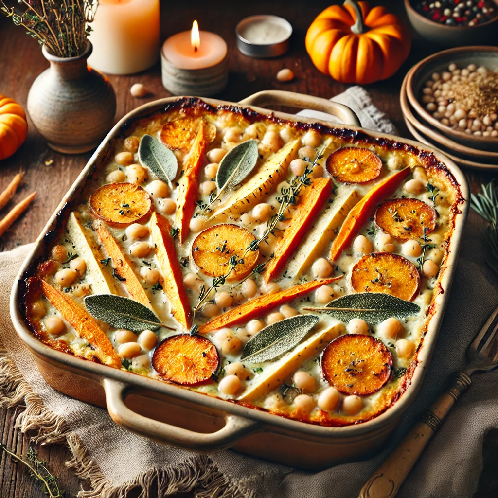 Creamy White Bean & Root Vegetable Gratin with Fall Herbs...