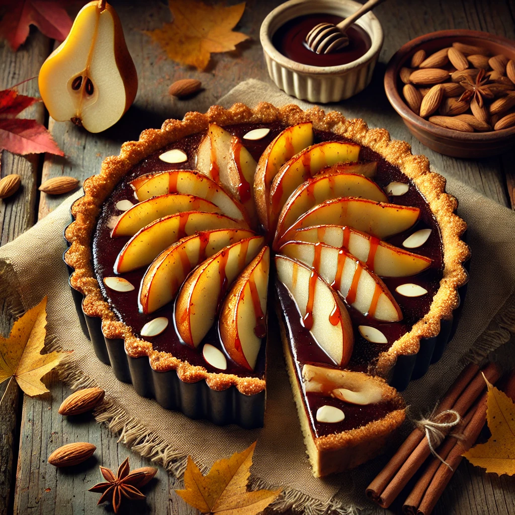 View RecipeDark Chocolate & Almond Tart with Spiced Pears and Maple Glaze