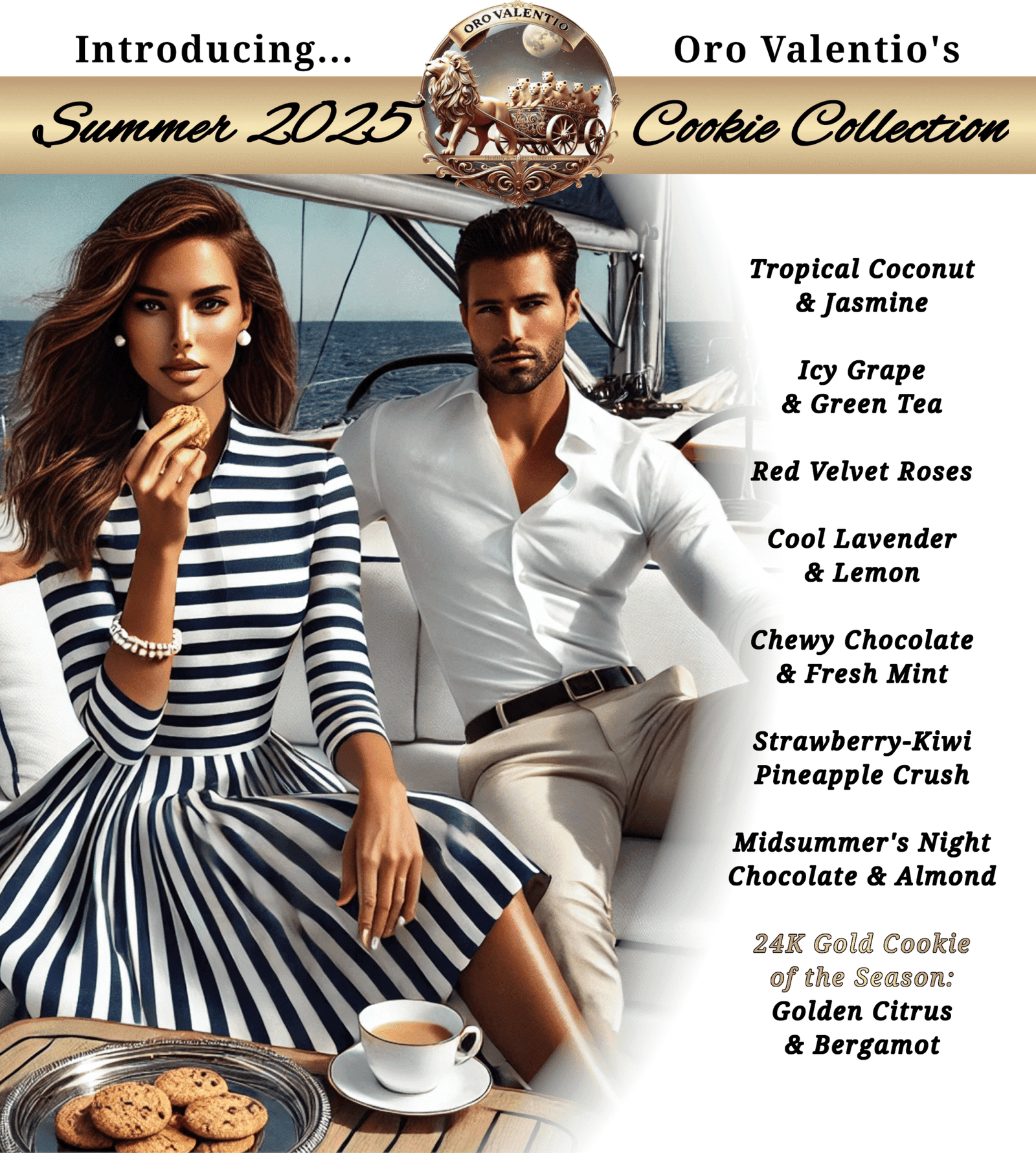 In every seasonal release of Oro Valentio’s signature keto cookie collection—always crafted without gluten and rooted in clean, nourishing ingredients—one cookie is chosen to wear the crown. This standout flavor is depicted with a delicate flourish of 24k edible gold flakes, symbolizing the essence of Oro Valentio itself: healthy & strong, golden. More than decoration, the gold is a celebration of that season’s most inspiring flavor—honoring nature’s richness and the strength that comes from mindful indulgence. It’s a tradition that reflects both luxury and purpose, making each golden-topped cookie a rare, beautiful highlight in an already exceptional lineup.