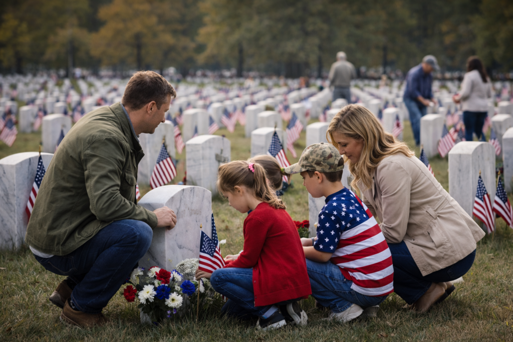 Individuals and families visit veterans’ memorials and cemeteries, placing flags or flowers at gravesites. This tradition connects generations, ensuring that even those no longer present are not forgotten. It is an act of personal honor—simple, yet deeply meaningful.